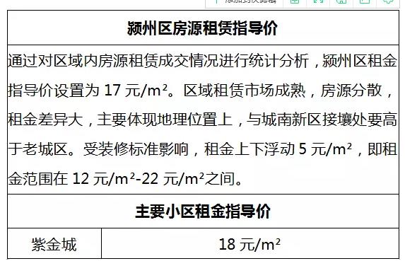 4月16日,阜阳市房地产管理局公布2018年第一季度阜阳市城区房屋租金指导价信息,具体如下: