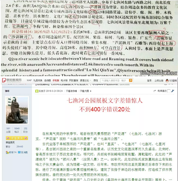 阜阳七渔河风景带标牌出现多处错误,官方回应来了!-阜阳旅游