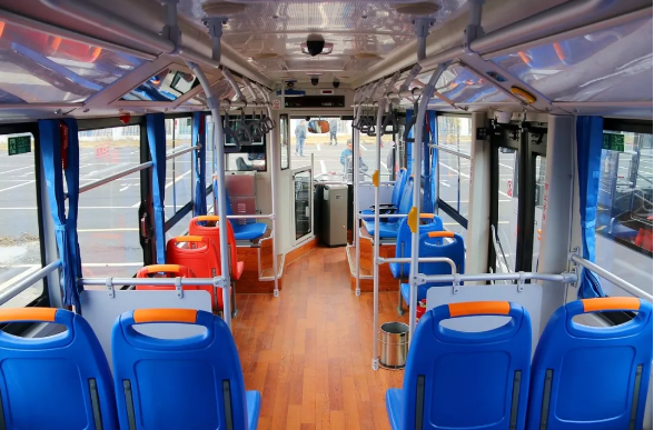 车身长8.5米,车内共设21个乘客座位,满载的情况下,一车可拉载50人左右。再上车看看内饰